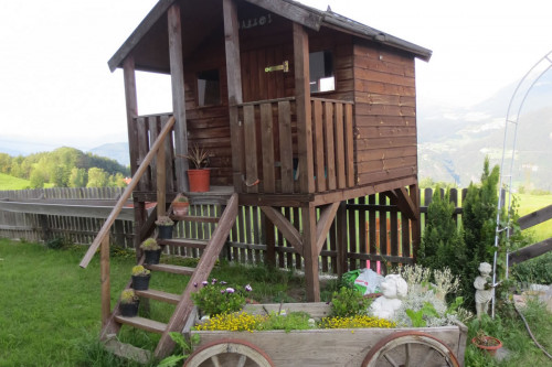 Sul prato davanti alla casa abbiamo a disposizione sedie a sdraio. Per i bambini ci sono diversi dispositivi e giocattoli (trampolino, cassone di sabbia, altalene ecc.)